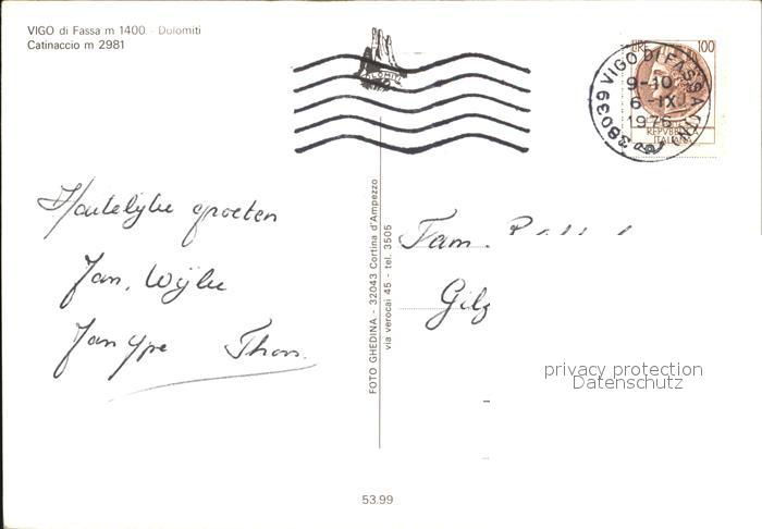 old postcard Vigo di Fassa Dolomiti Catinaccio postalisch gelaufen Erhaltung siehe scans