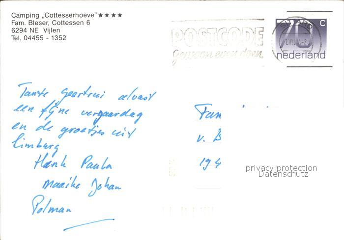 old postcard Vijlen Camping Cottesserhoeve postalisch gelaufen Erhaltung siehe scans