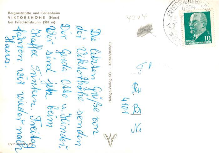 73892524 alte Postkarte Viktorshoehe Friedrichsbrunn Bergraststaette und Ferienheim postalisch gelaufen Erhaltung siehe scans [FriedD77] KatCode: 11110015085115