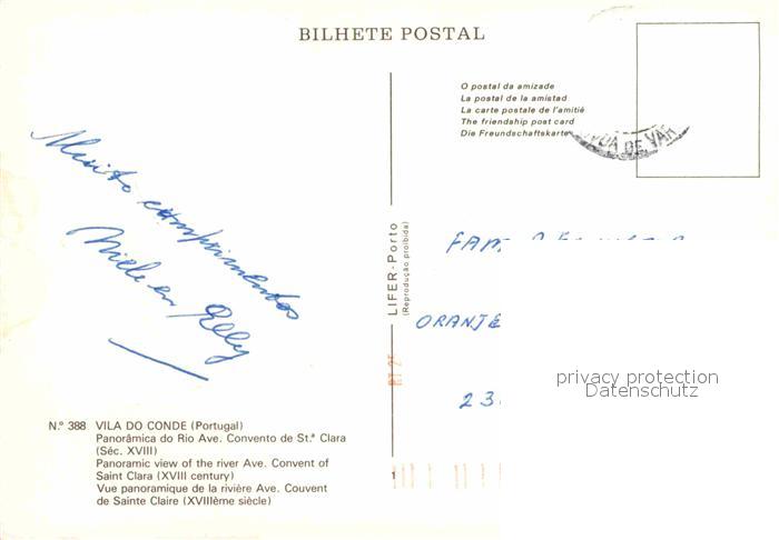 old postcard Vila do Conde Rio Ave Convento de St. Clara postalisch gelaufen Erhaltung siehe scans [NatalD47]
