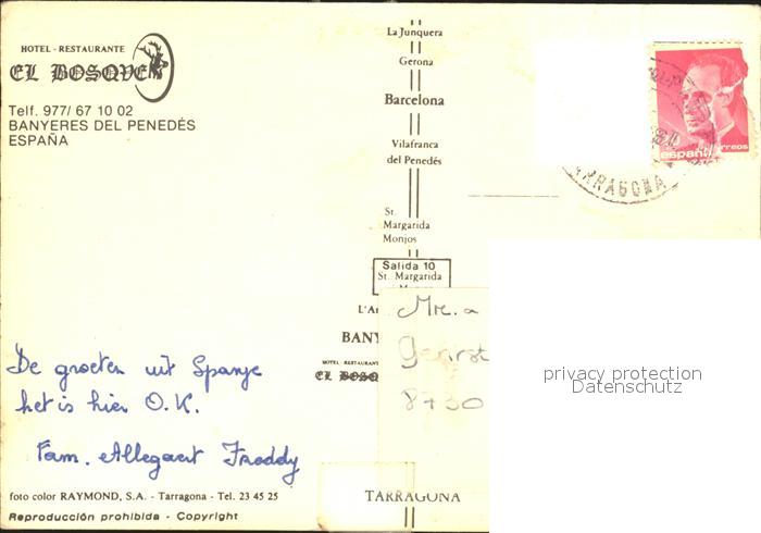 old postcard Vilafranca del Panedes Hotel Restaurant El Bosque postalisch gelaufen Erhaltung siehe scans