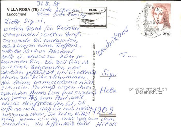 old postcard Villa Rosa Martinsicuro Strand postalisch gelaufen Erhaltung siehe scans