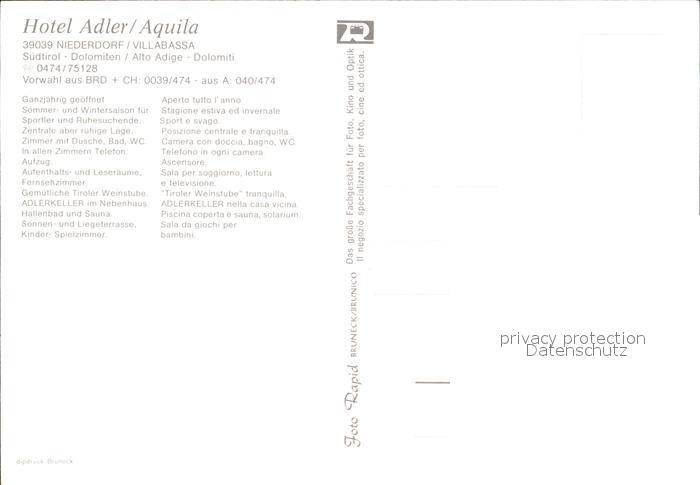 Villabassa Niederdorf Hotel Adler postalisch nicht gelaufen Erhaltung siehe scans