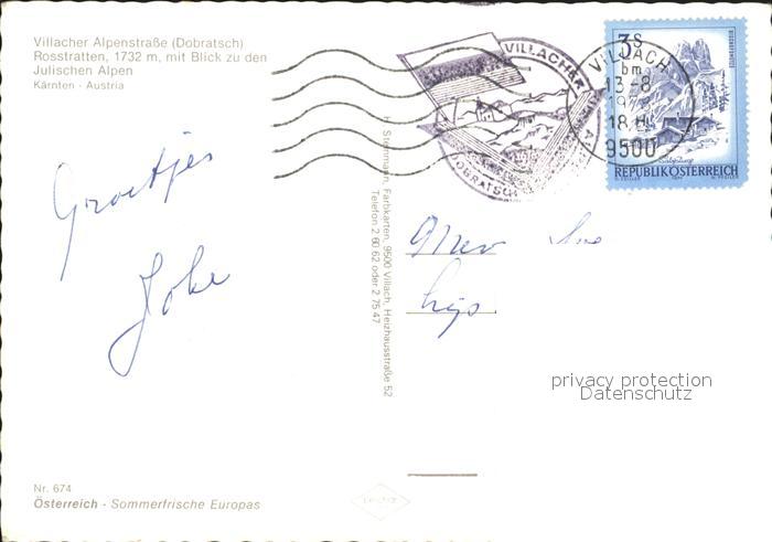 71907353 alte Postkarte Villach Kaernten Alpenstrasse Dobratsch Rosstratten Julische Alpen postalisch gelaufen KatCode: 11390211020201