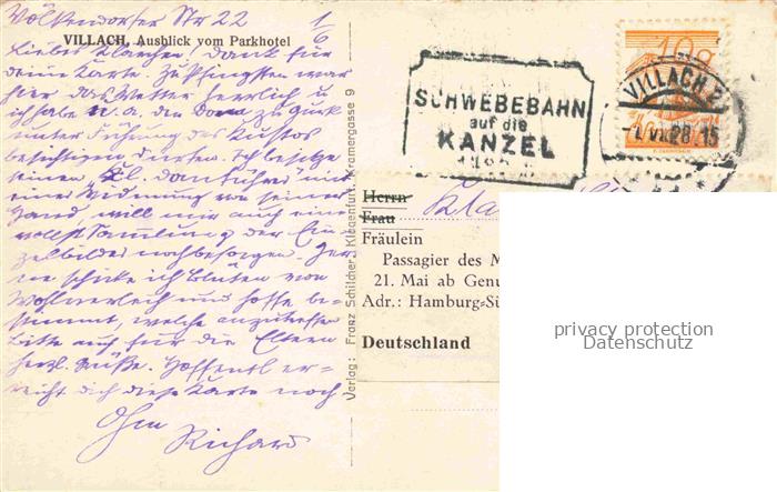 74023361 alte Postkarte VILLACH Kaernten AT Blick vom Parkhotel postalisch gelaufen Erhaltung siehe scans [WerneD78] KatCode: 11390211020201