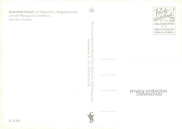74156426 VILLACH Kaernten AT Fliegeraufnahme Drau Ossiachersee Magdalenensee Burgruine-Landskron Stadtansicht Bahnhof Berge postalisch nicht gelaufen Fliegeraufnahme Erhaltung siehe scans [Karloger] KatCode: 11390211020201