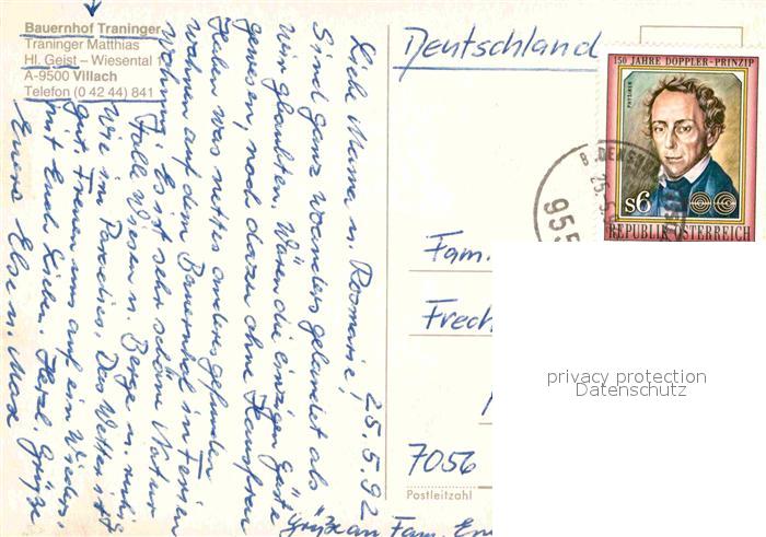 72895403 alte Postkarte Villach Kaernten Bauernhof Traninger Gaststube Skipiste postalisch gelaufen Erhaltung siehe scans [WerneD78] KatCode: 11390211020201