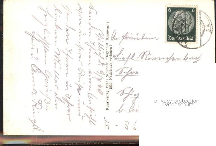 71541210 alte Postkarte Villach Kaernten Blick ueber die Stadt Kirche Drau Bruecke postalisch gelaufen Erhaltung siehe scans KatCode: 11390211020201