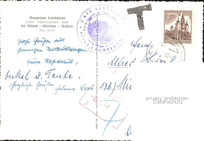 72181104 alte Postkarte Villach Kaernten Burgruine Landskron postalisch gelaufen Erhaltung siehe scans KatCode: 11390211020201