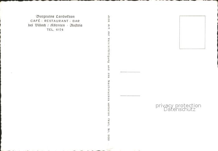 72025150 Villach Kaernten Burgruine Landskron postalisch nicht gelaufen Erhaltung siehe scans KatCode: 11390211020201