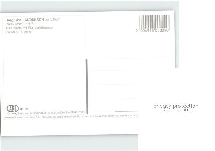 72134612 Villach Kaernten Burgruine Landskron Adlerwarte postalisch nicht gelaufen Erhaltung siehe scans KatCode: 11390211020201