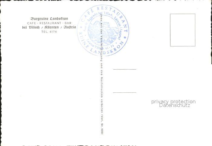 72411572 Villach Kaernten Burgruine Landskron Cafe Restaurant Ossiacher See postalisch nicht gelaufen Erhaltung siehe scans KatCode: 11390211020201