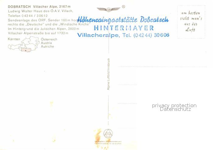 72779669 Villach Kaernten Dobratsch Villacher Alpe Ludwig Walter Haus des oeAV Alpenpanorama Fliegeraufnahme postalisch nicht gelaufen Erhaltung siehe scans [FriedD77] KatCode: 11390211020201