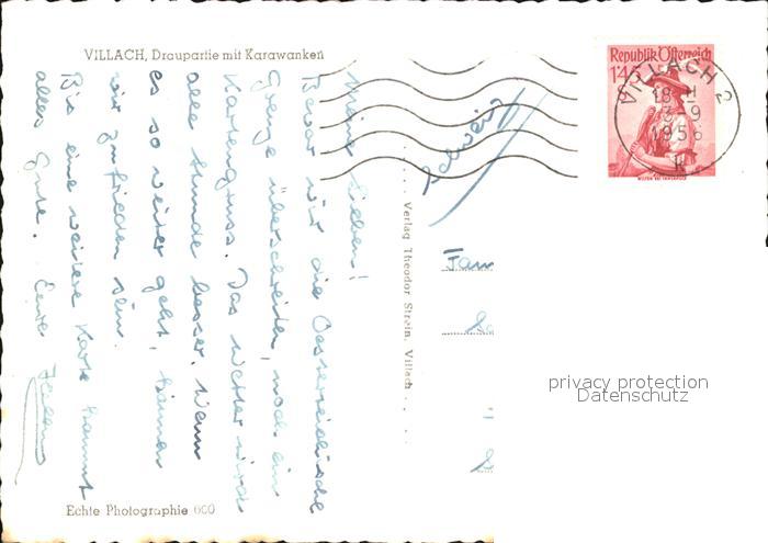 42587053 alte Postkarte Villach Kaernten Drau Bruecke mit Karawanken postalisch gelaufen Erhaltung siehe scans [FriedD77] KatCode: 11390211020201