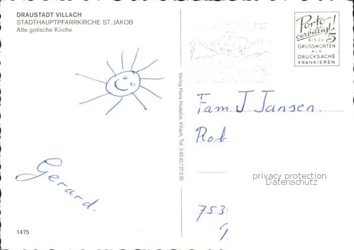 72317654 alte Postkarte Villach Kaernten Draustadt Pfarrkirche postalisch gelaufen Erhaltung siehe scans KatCode: 11390211020201