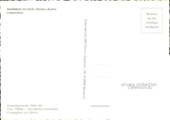 71860182 Villach Kaernten Fliegeraufnahme postalisch nicht gelaufen Erhaltung siehe scans KatCode: 11390211020201