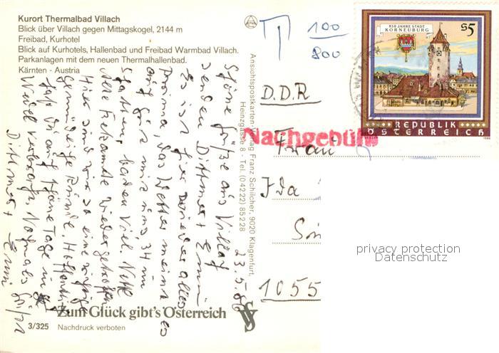 72970425 alte Postkarte Villach Kaernten Fliegeraufnahme Kurhotels Hallenbad Freibad postalisch gelaufen Erhaltung siehe scans [LiesaD40] KatCode: 11390211020201