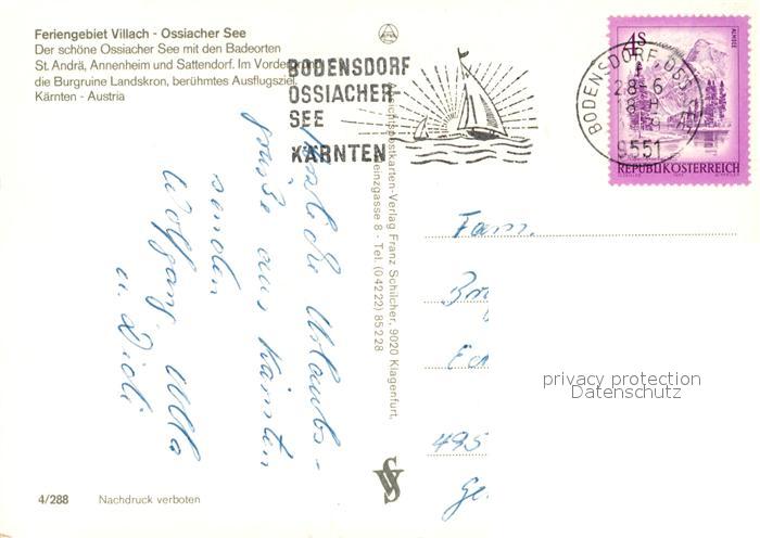 73338950 alte Postkarte Villach Kaernten Fliegeraufnahme mit Ossiacher-See postalisch gelaufen Erhaltung siehe scans [LiesaD40] KatCode: 11390211020201
