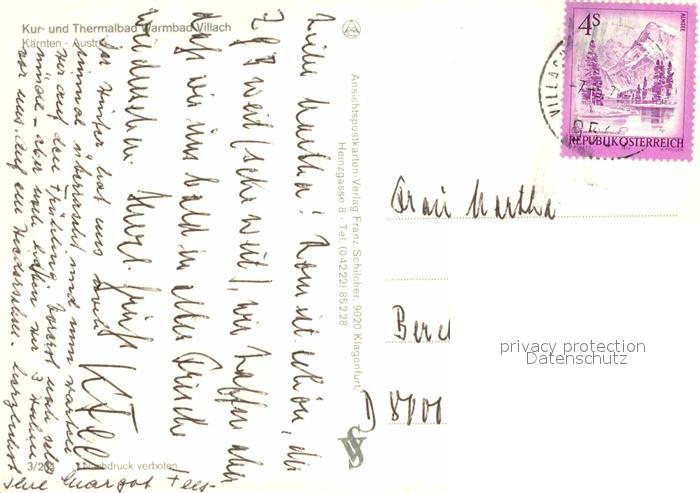 72631806 alte Postkarte Villach Kaernten Fliegeraufnahme Warmbad postalisch gelaufen Erhaltung siehe scans [LiesaD40] KatCode: 11390211020201