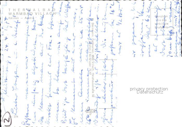 71963106 Villach Kaernten Fliegeraufnahme Warmbad postalisch nicht gelaufen Erhaltung siehe scans KatCode: 11390211020201
