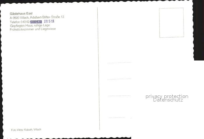 72499895 Villach Kaernten Gaestehaus Essl postalisch nicht gelaufen Erhaltung siehe scans KatCode: 11390211020201