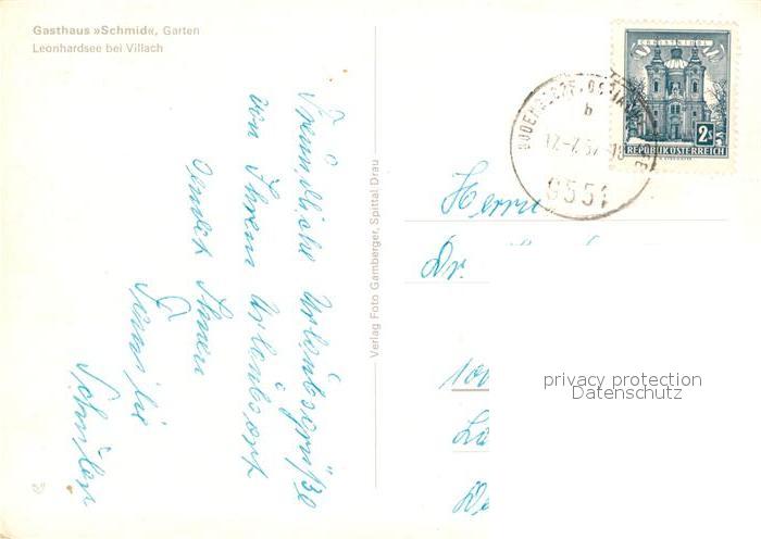 73233651 alte Postkarte Villach Kaernten Gasthaus Schmid am Leonhardsee postalisch gelaufen Erhaltung siehe scans [LiesaD40] KatCode: 11390211020201
