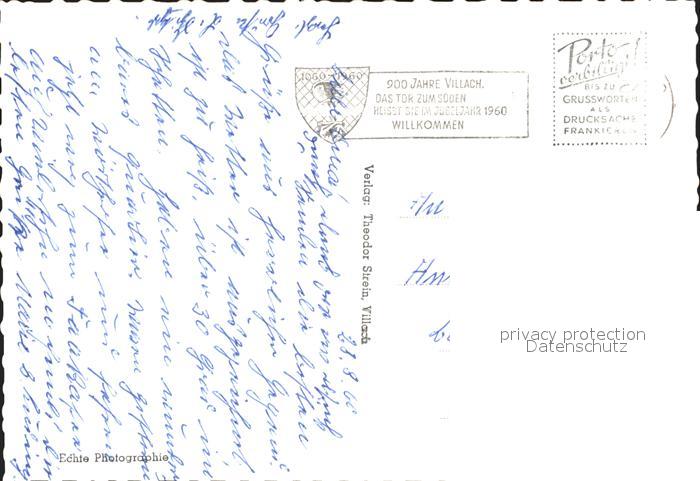 72162718 alte Postkarte Villach Kaernten Gesamtansicht Alpenpanorama Kurhotel Warmbad Drau Bruecke postalisch gelaufen Erhaltung siehe scans KatCode: 11390211020201