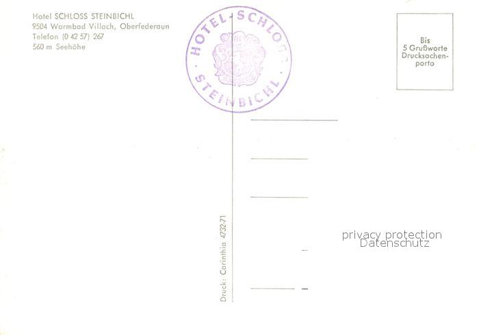 73268836 Villach Kaernten Hotel Schloss Steinbichl postalisch nicht gelaufen Erhaltung siehe scans [KathaD81] KatCode: 11390211020201