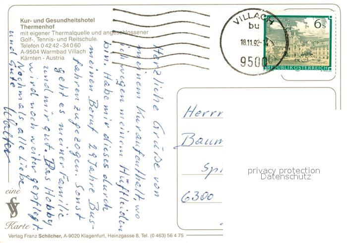 73048981 alte Postkarte Villach Kaernten Hotel Thermenhof postalisch gelaufen Erhaltung siehe scans [KathaD81] KatCode: 11390211020201