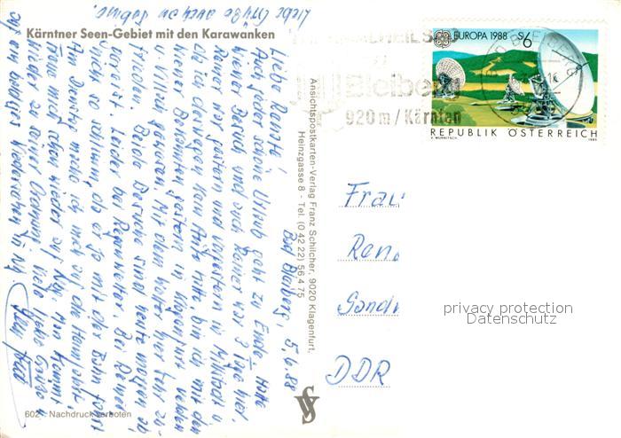 73319388 alte Postkarte Villach Kaernten Kaerntner Seengebiet mit Karawanken aus der Vogelperspektive postalisch gelaufen Reliefkarte Erhaltung siehe scans [FriedD77] KatCode: 11390211020201