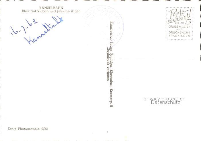71924951 Villach Kaernten Kanzelbahn postalisch nicht gelaufen Erhaltung siehe scans KatCode: 11390211020201