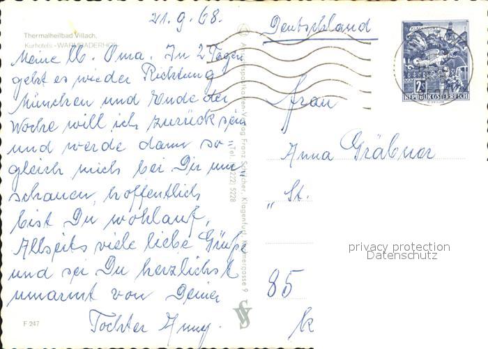 72535961 alte Postkarte Villach Kaernten Kurhotel Warmbaderhof postalisch gelaufen Erhaltung siehe scans [LiesaD40 kt120box] KatCode: 11390211020201