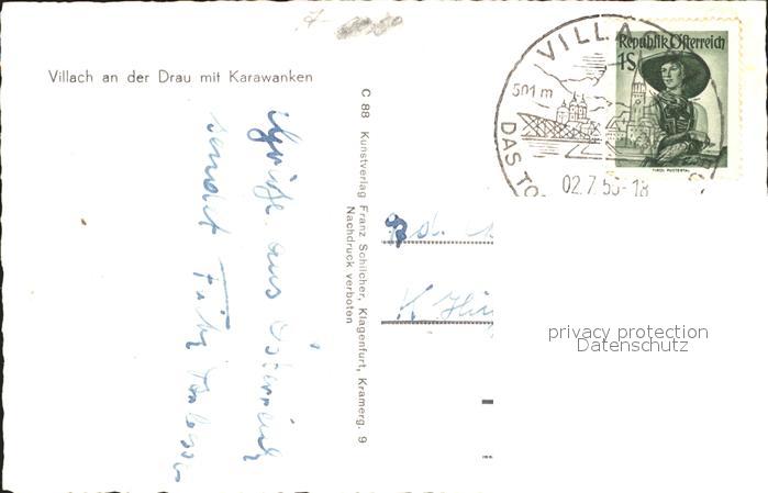 71812318 alte Postkarte Villach Kaernten mit Drau und Karawanken postalisch gelaufen Erhaltung siehe scans KatCode: 11390211020201