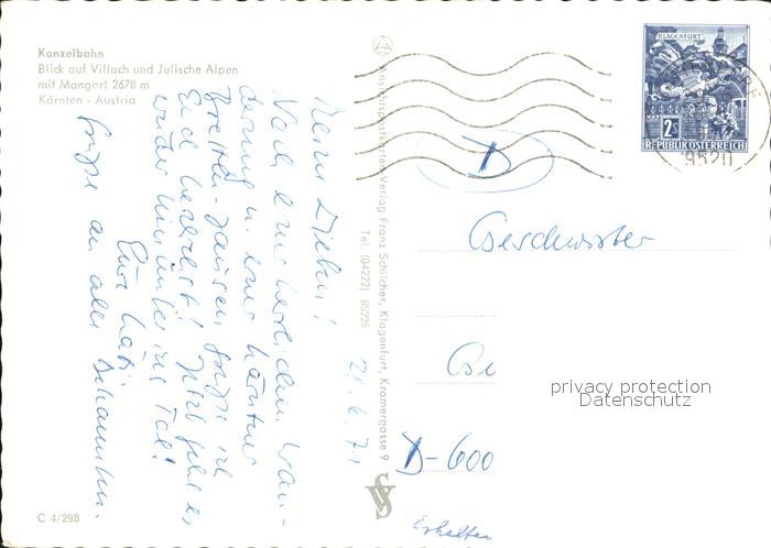 72448752 alte Postkarte Villach Kaernten mit Mangert und Kanzelbahn postalisch gelaufen Erhaltung siehe scans KatCode: 11390211020201