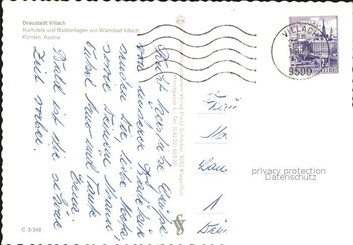 72447133 alte Postkarte Villach Kaernten Stadt an der Drau Kurhotel Badeanlage Warmbad Alpenblick postalisch gelaufen Erhaltung siehe scans KatCode: 11390211020201