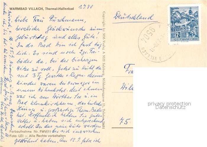 73052524 alte Postkarte Villach Kaernten Thermalbad postalisch gelaufen Erhaltung siehe scans [NatalD47] KatCode: 11390211020201