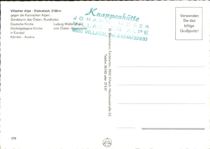 71420006 Villach Kaernten Villacher Alpe-Dobratsch postalisch nicht gelaufen Erhaltung siehe scans KatCode: 11390211020201