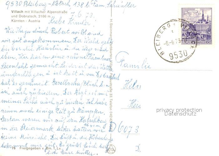 73175050 alte Postkarte Villach Kaernten Villacher Alpenstrasse Dobratsch Gailtaler Alpen Fliegeraufnahme postalisch gelaufen Erhaltung siehe scans [FriedD77] KatCode: 11390211020201