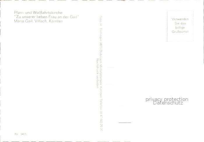 72064103 Villach Kaernten Wallfahrtskirche Zu unserer lieben Frau an der Gail Maria Gail postalisch nicht gelaufen Erhaltung siehe scans KatCode: 11390211020201