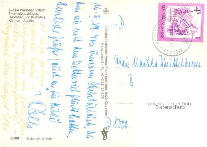 72970457 alte Postkarte Villach Kaernten Warmbad postalisch gelaufen Erhaltung siehe scans [LiesaD40] KatCode: 11390211020201