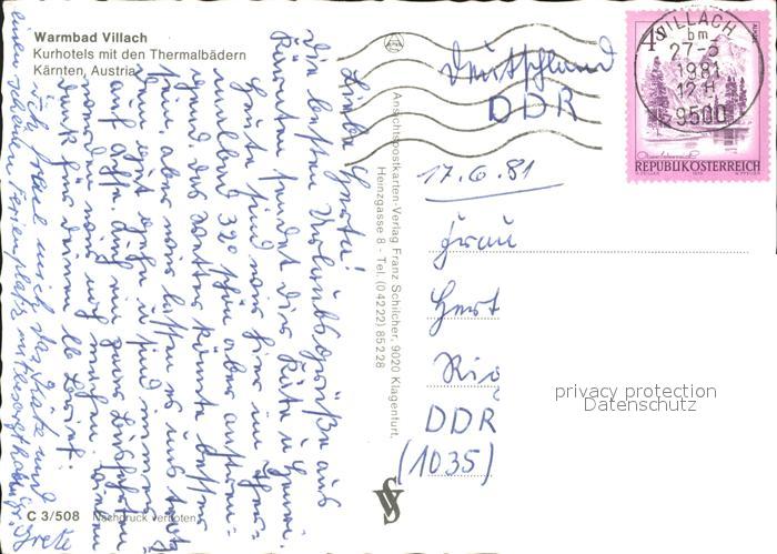 72108376 alte Postkarte Villach Kaernten Warmbad Kuthotels postalisch gelaufen Erhaltung siehe scans KatCode: 11390211020201