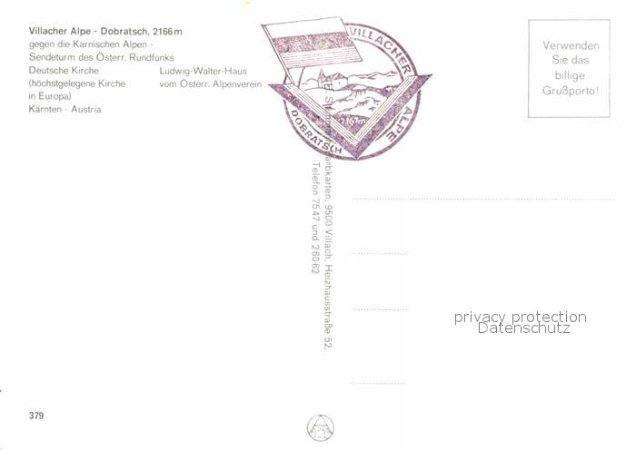 72780956 Villacher Alpe gegen die Karnischen Alpen Sendeturm Kirche Ludwig Walter Haus postalisch nicht gelaufen Erhaltung siehe scans [FriedD77] KatCode: 11390