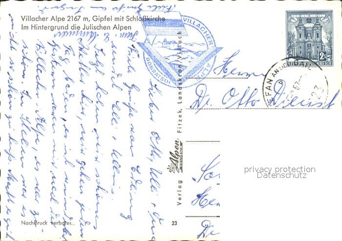72395791 alte Postkarte Villacher Alpe Gipfel Schlosskirche Julische Alpen postalisch gelaufen Erhaltung siehe scans KatCode: 11390