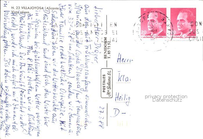 old postcard Villajoyosa Vista aerea postalisch gelaufen Erhaltung siehe scans