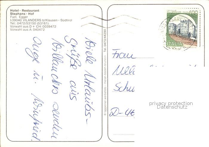old postcard Villanders Villandro Hotel-Restaurant Stephans-Hof postalisch gelaufen Erhaltung siehe scans