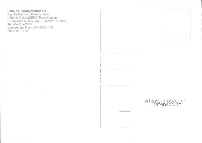 Villanders Villandro Pension Tanoetscherhof postalisch nicht gelaufen Erhaltung siehe scans