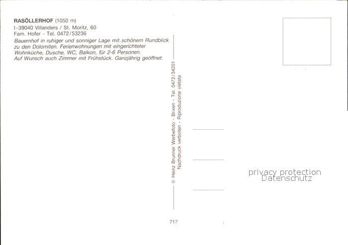 Villanders Villandro Rasoellenhof postalisch nicht gelaufen Erhaltung siehe scans