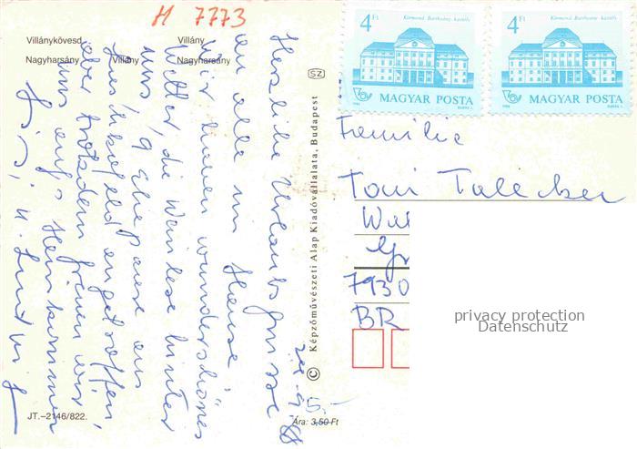 74006289 old postcard Villany HU und Nagyharsany postalisch gelaufen Erhaltung siehe scans [FriedD77] KatCode: 11550