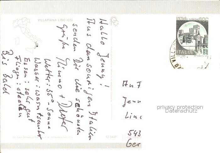old postcard Villapiana Lido Promenade Strand Sonnenuntergang am Meer postalisch gelaufen Erhaltung siehe scans