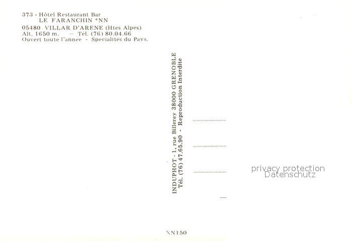 13560775 Villar-d Arene Hautes Alpes Hotel Restaurant Le Faranchin KatCode 11170005105181